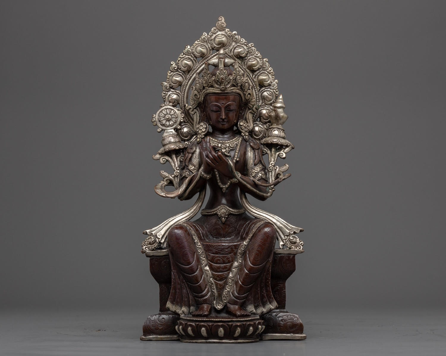 Copper Maitreya Buddha Silver Oxidized.